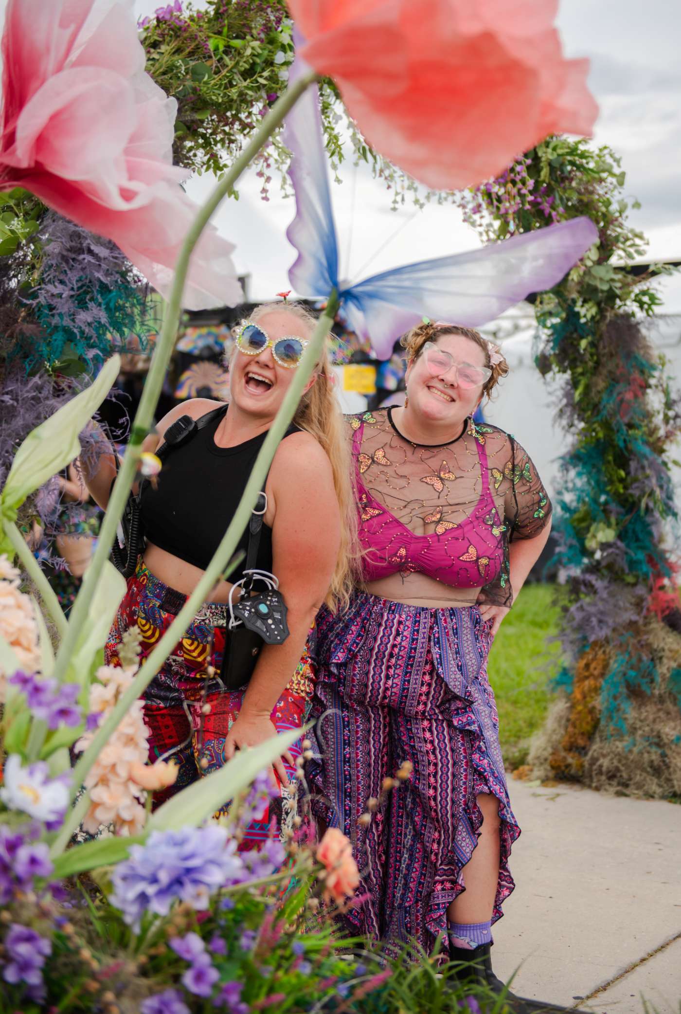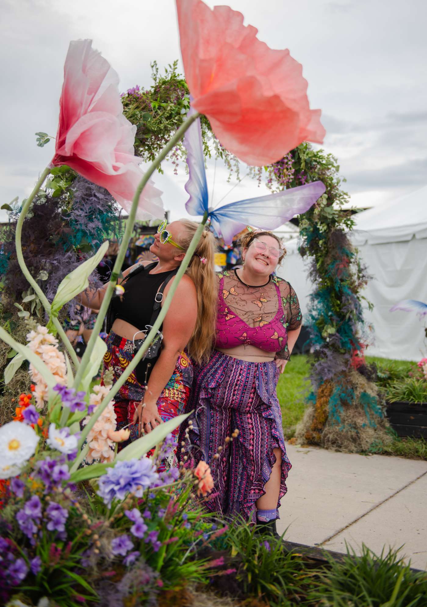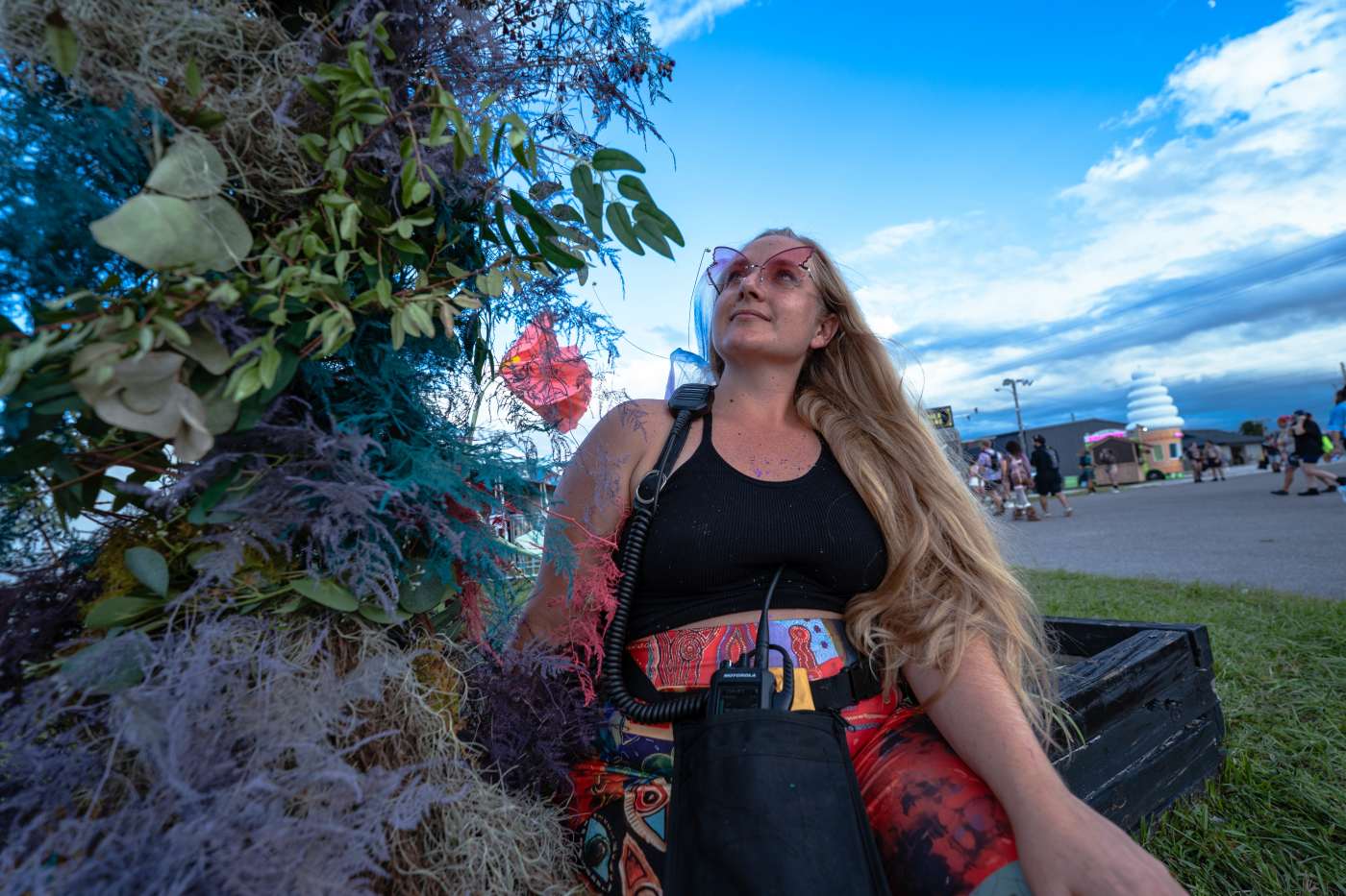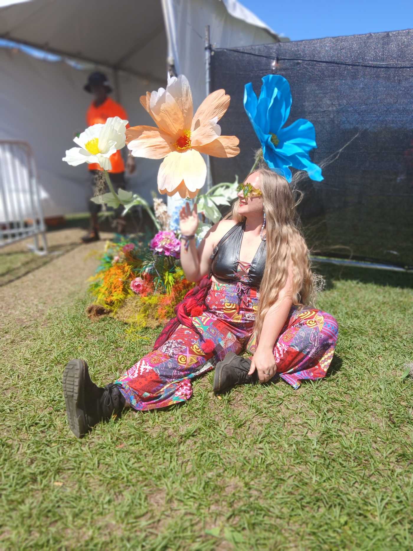 I wanted the flowers to feel fun and easy to exist with, not something you had to tiptoe around. People could walk through them, sit nearby, lean on them, or pass right through on the way to the next stage. Nothing here was posed or planned once the weekend started—the way people show up in these photos is exactly how I hoped the space would be used.