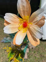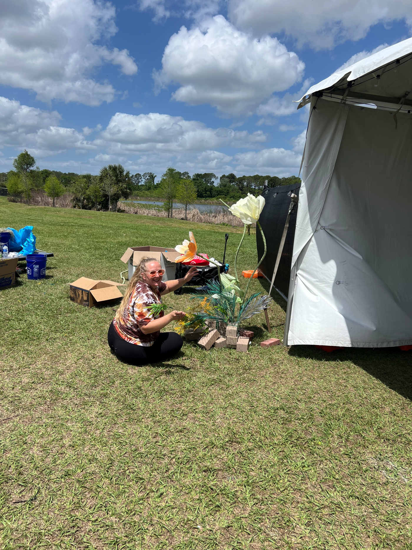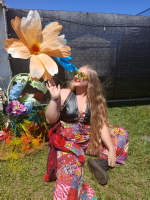 These photos show the flower installations I designed for this music festival. I placed oversized blooms throughout the grounds—along walkways, in open grassy areas, and anywhere people naturally slowed down between sets.